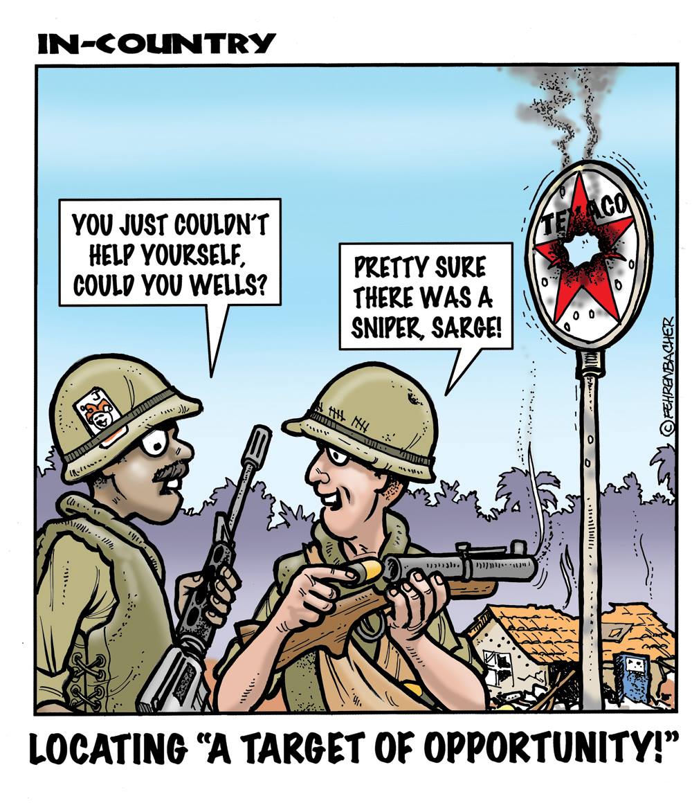 Phil enlisted in the Army in 1965 where he served for years in Vietnam.  He became a graphic designer and has worked for the state of Oregon for 26 years.  He retired in 2003 and started the Cartoon "In-Country".  The cartoons reflect his experiences during his tour of duty in South Vietnam.