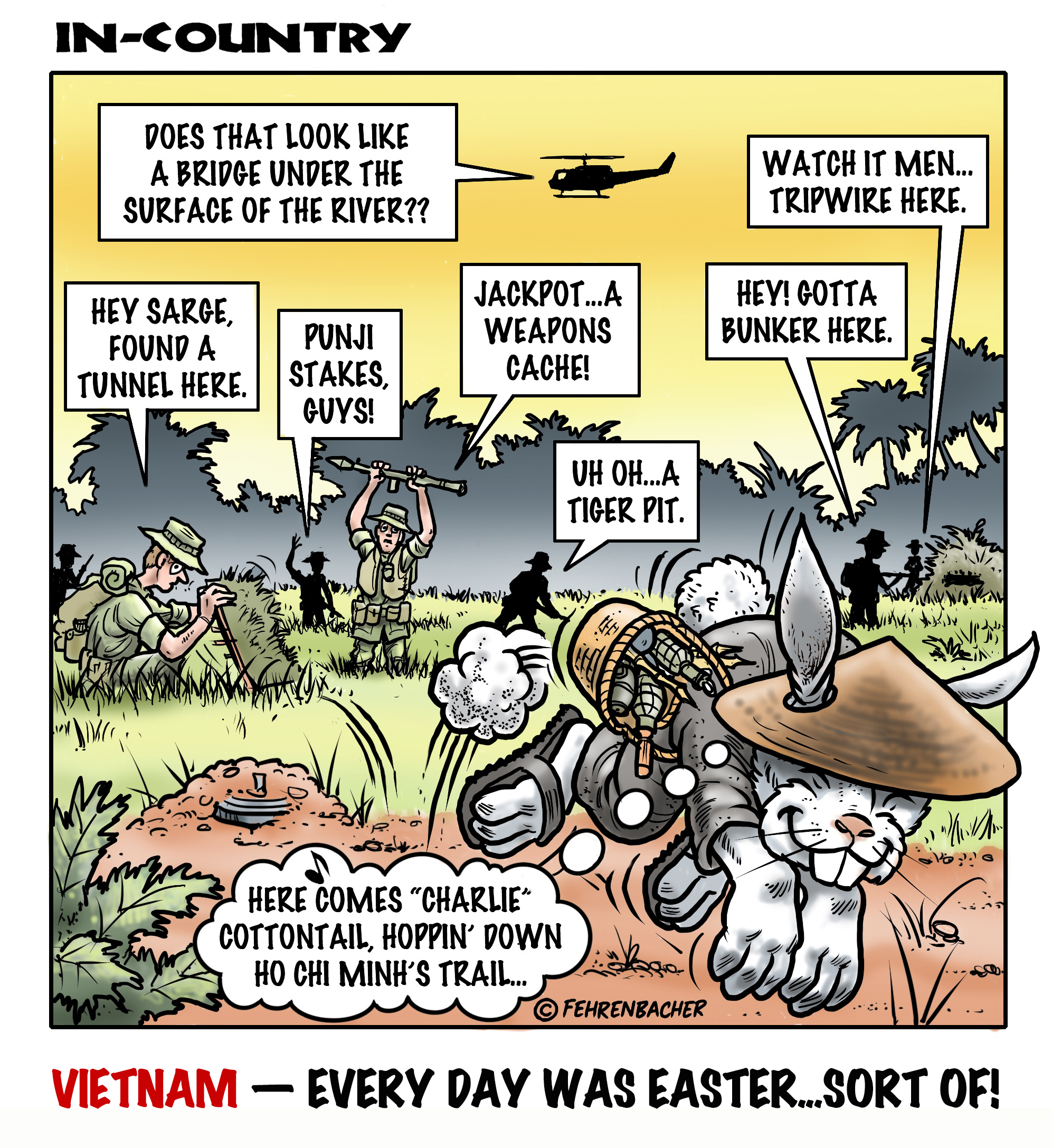 Phil enlisted in the Army in 1965 where he served for years in Vietnam. He became a graphic designer and has worked for the state of Oregon for 26 years. He retired in 2003 and started the Cartoon "In-Country". The cartoons reflect his experiences during his tour of duty in South Vietnam.